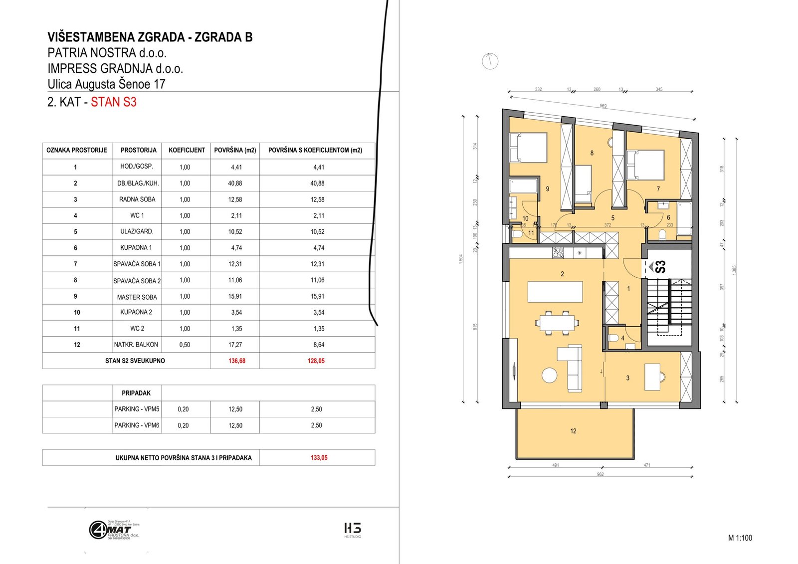 Dostupno Stan 2 (S2) – Augusta Šenoe 17 – Velika Gorica – Z2 Augusta Šenoe 17, Velika Gorica 4 Spav. sob. 2 Kup. 130.55 m2